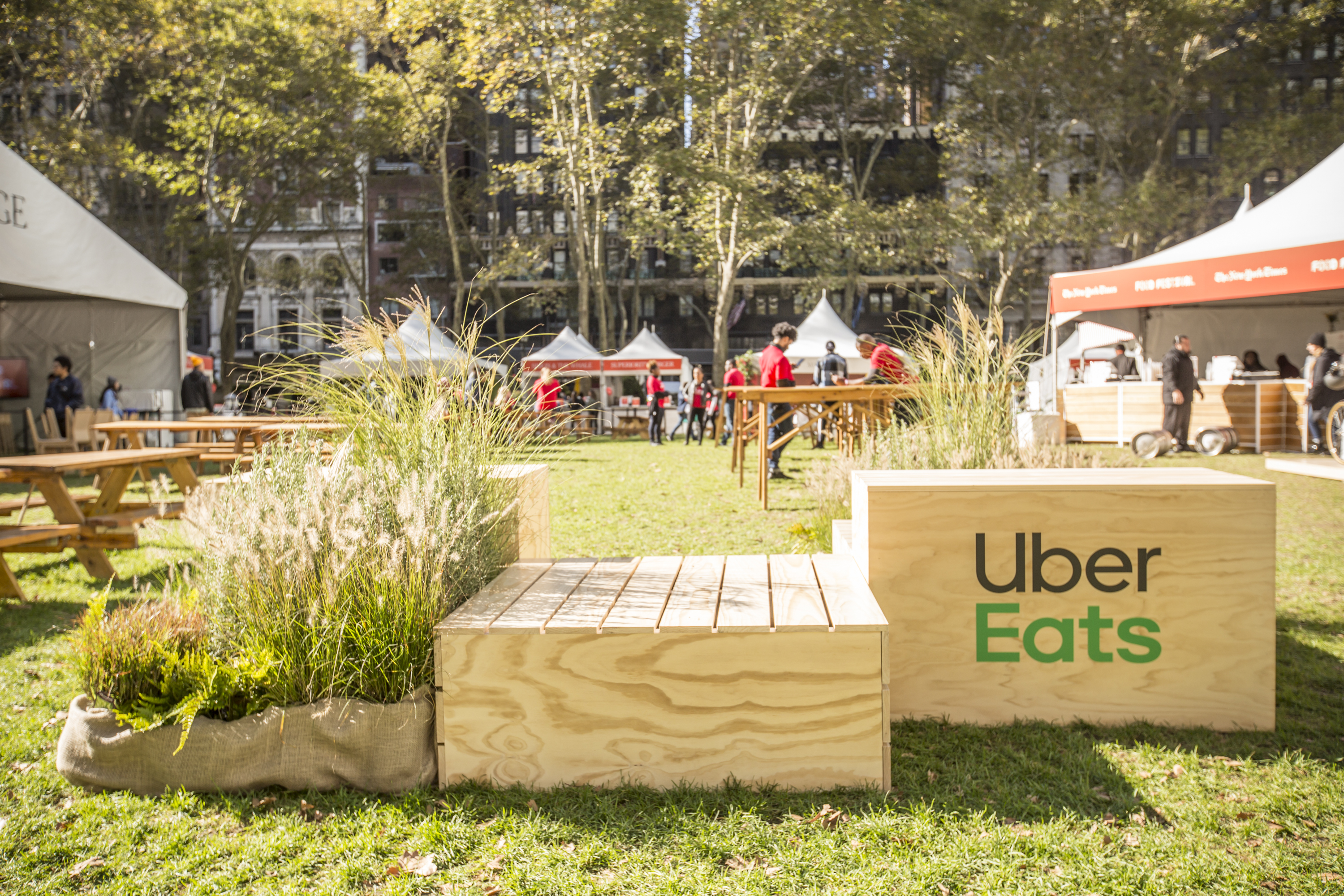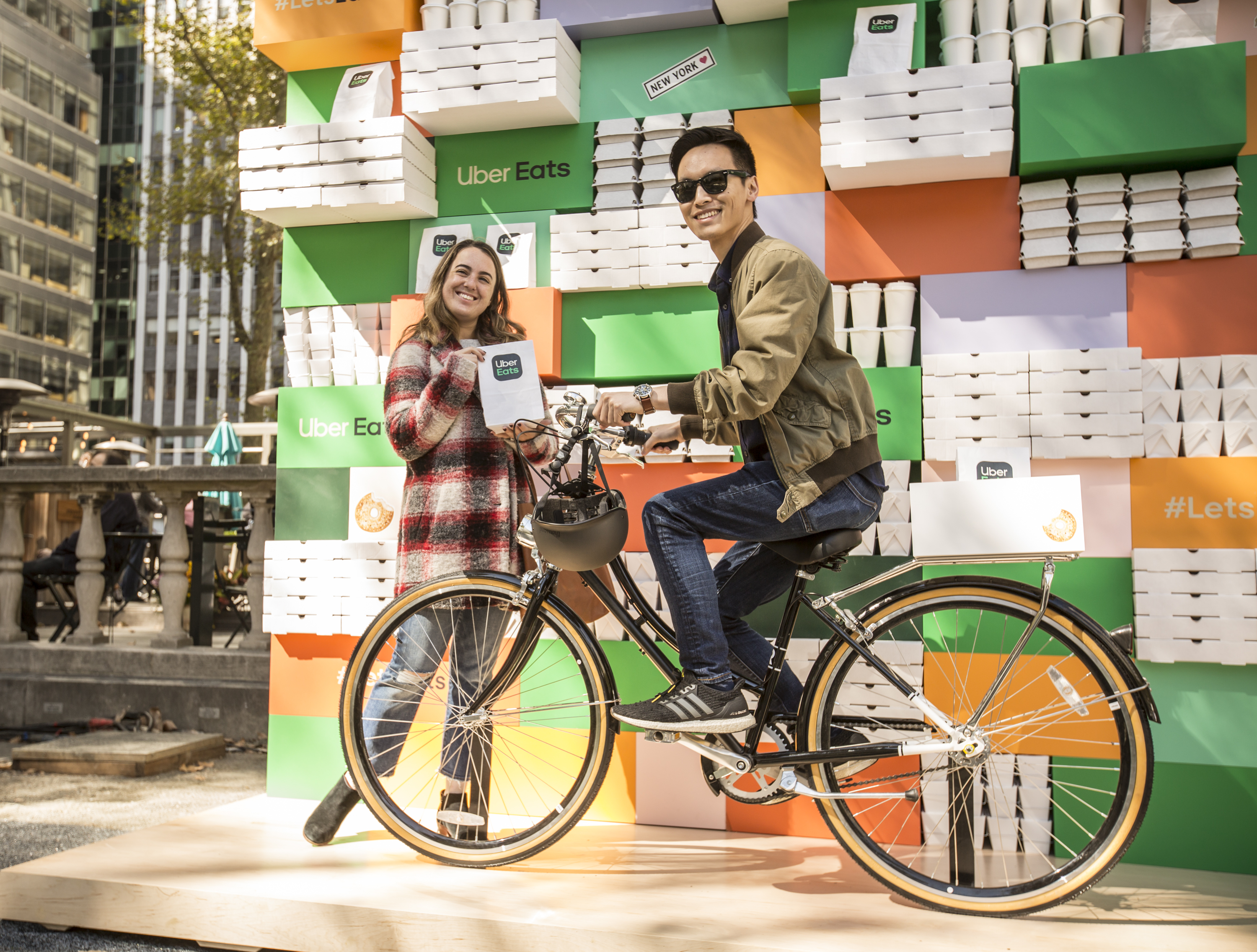 Uber Eats wanted to show up at the New York Times Food Festival with an installation that celebrated the hardworking bike couriers of NYC. So in order to show the incredible amount of food these couriers deliver each day, we designed two seperate photo-momets featuring physically impossible stacks of delivery containers.